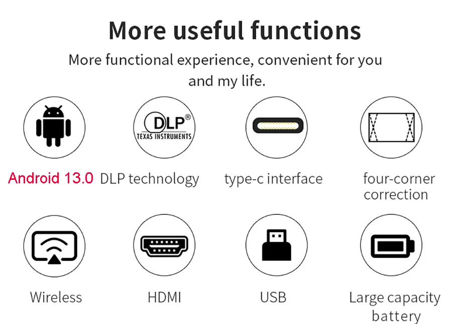 1.High Resolution, High Brightness: DLP DMD Native 1920*1080p resolution, support 1080P, 4K video play